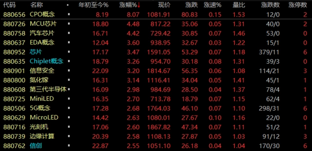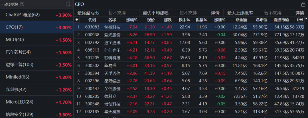(CPO板块涨跌幅情况 图源:同花顺)