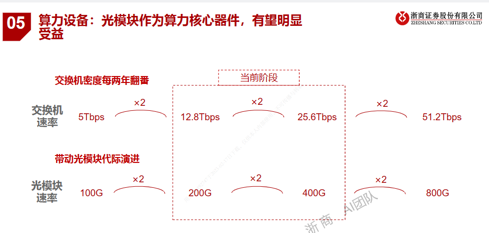 (交换机密度带动光模块代际发展 图源:浙商证券研究所)