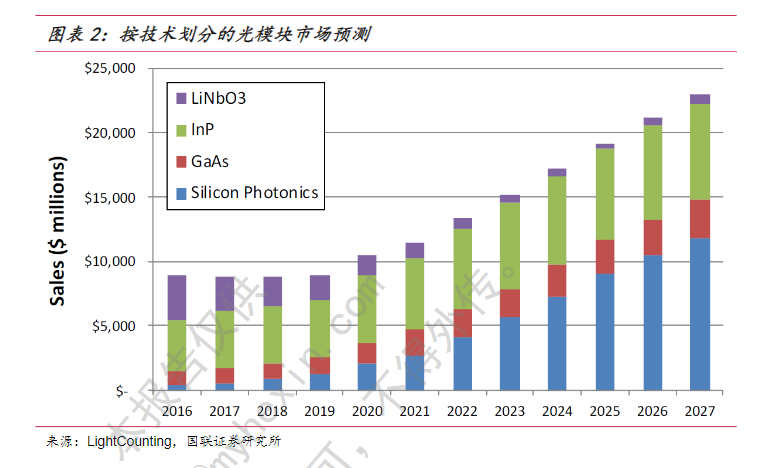(按技术划分的光模块市场预测 图源:国联证券)