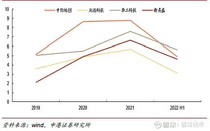 在这之中,华工科技在此前代际产品推出时间总是慢半拍,而在2022上半年推出全系列的800G产品后,立马又掌握了市场的话语权:从净利润图可以看出,华工科技2022年半年度已经超过了中际旭创,展现了强势增长力。