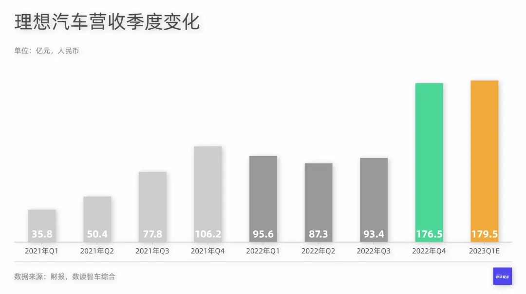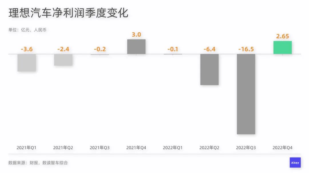 2021年首次单季度营收破百亿后,连续三个季度,理想再也没有突破这个关口。2022年,理想营收增速下滑,亏损20.3亿,平均一辆车亏1.5万元。