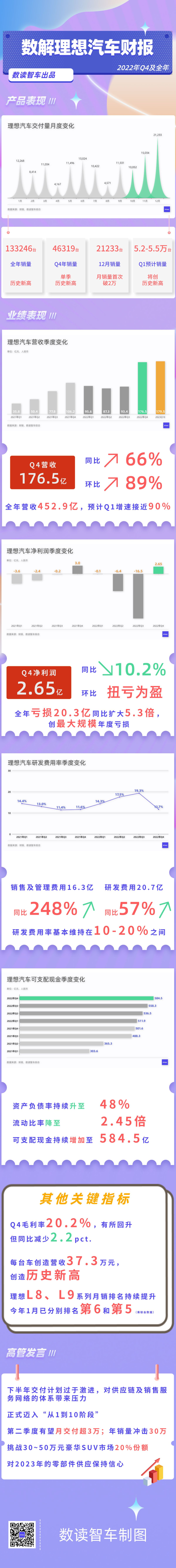 四季度,理想交付量首次突破4万,12月单月突破2万,连续创下了新高。今年2月,L7系列发布,理想预计一季度销量5.2万-5.5万辆,如果顺利,销量还会创下新高。