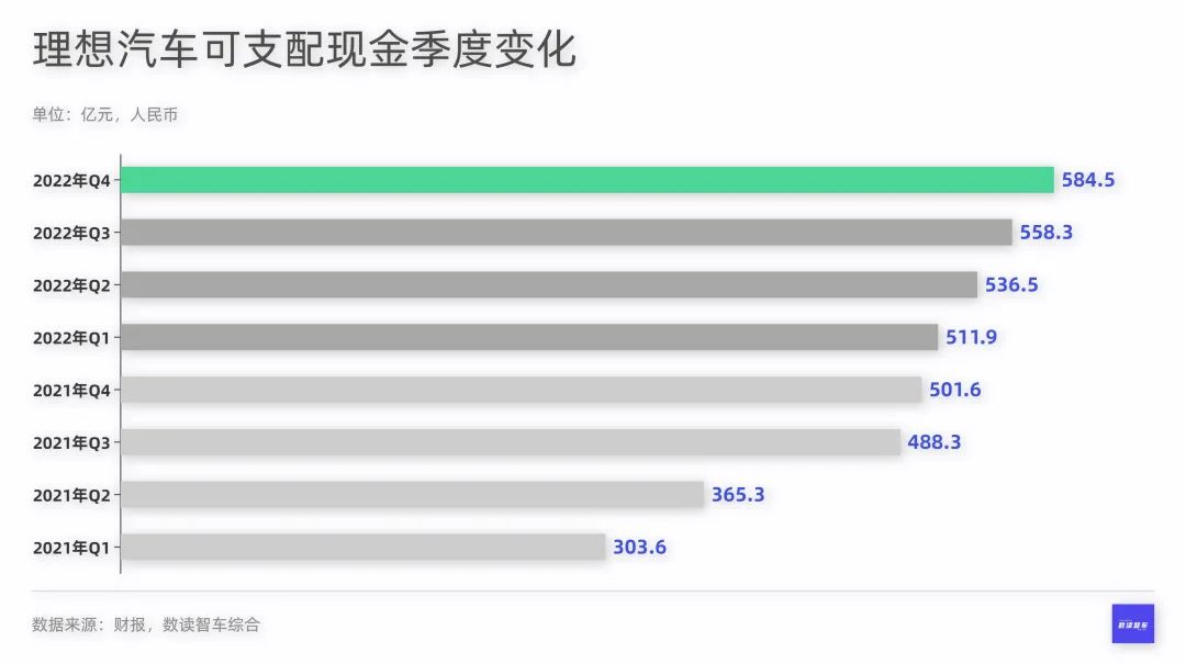 虽然经历了一年的波折,理想的经营指标依然健康,资产负债率48%,可支配资金(现金及现金等价物、受限制现金、定期存款、短期投资等)连续第九个季度增加,目前达到了584.5亿。