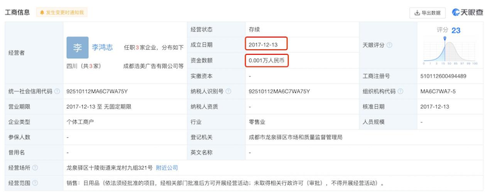 其中,经销客户龙泉驿区十陵街办欣茂日用品经营部是家个体工商户,成立于2017年12月,注册资金只有10元,在设立一年后就成为了公司前五大客户。登康口腔报告期对其的销售额分别为1731.19万元、2034.68万元、2270.18万元和1042.57万元。