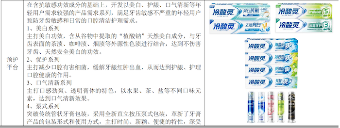 实际上,消费者买到的冷酸灵牙膏并非都是登康口腔自己生产的。据公司披露,部分需求量较大的基础及预护平台牙膏,以及牙刷、电动牙刷等其他口腔清洁护理用品主要采用的是委托生产方式。公司基础平台及预护平台牙膏主要为冷酸灵经典抗敏感牙膏以及在此基础上开发的具有美白、护龈功效的产品。