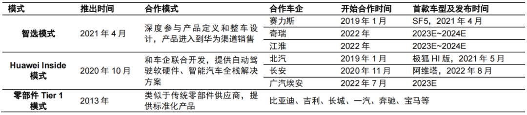 深度合作的智选车模式,华为从汽车立项就开始参与,从产品定义、造型设计、营销、用户体验等全环节参与,并以华为品控和质量为标准,同时提供华为门店销售渠道,标杆正是华为和赛力斯共同打造的AITO问界品牌。