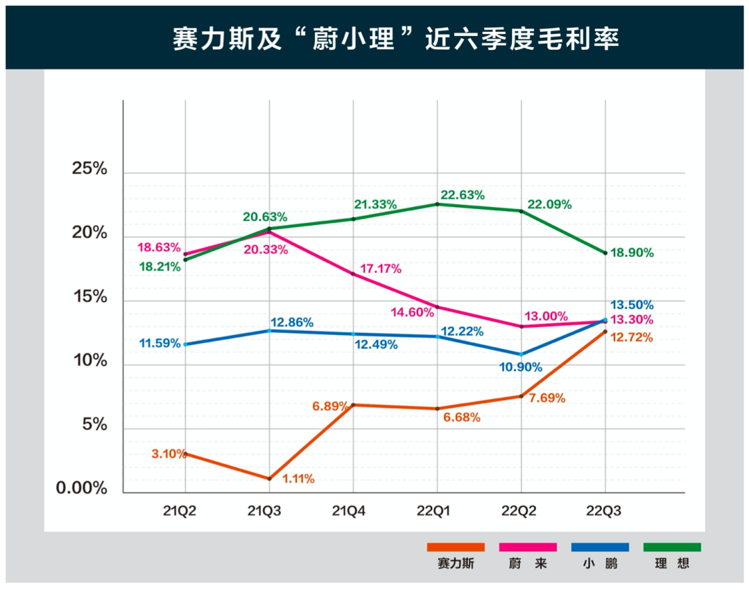 减亏迹象已经显现,2022年,赛力斯的毛利率较上年同期已经提升,单季度毛利率环比正增长,盈利能力持续向好。
