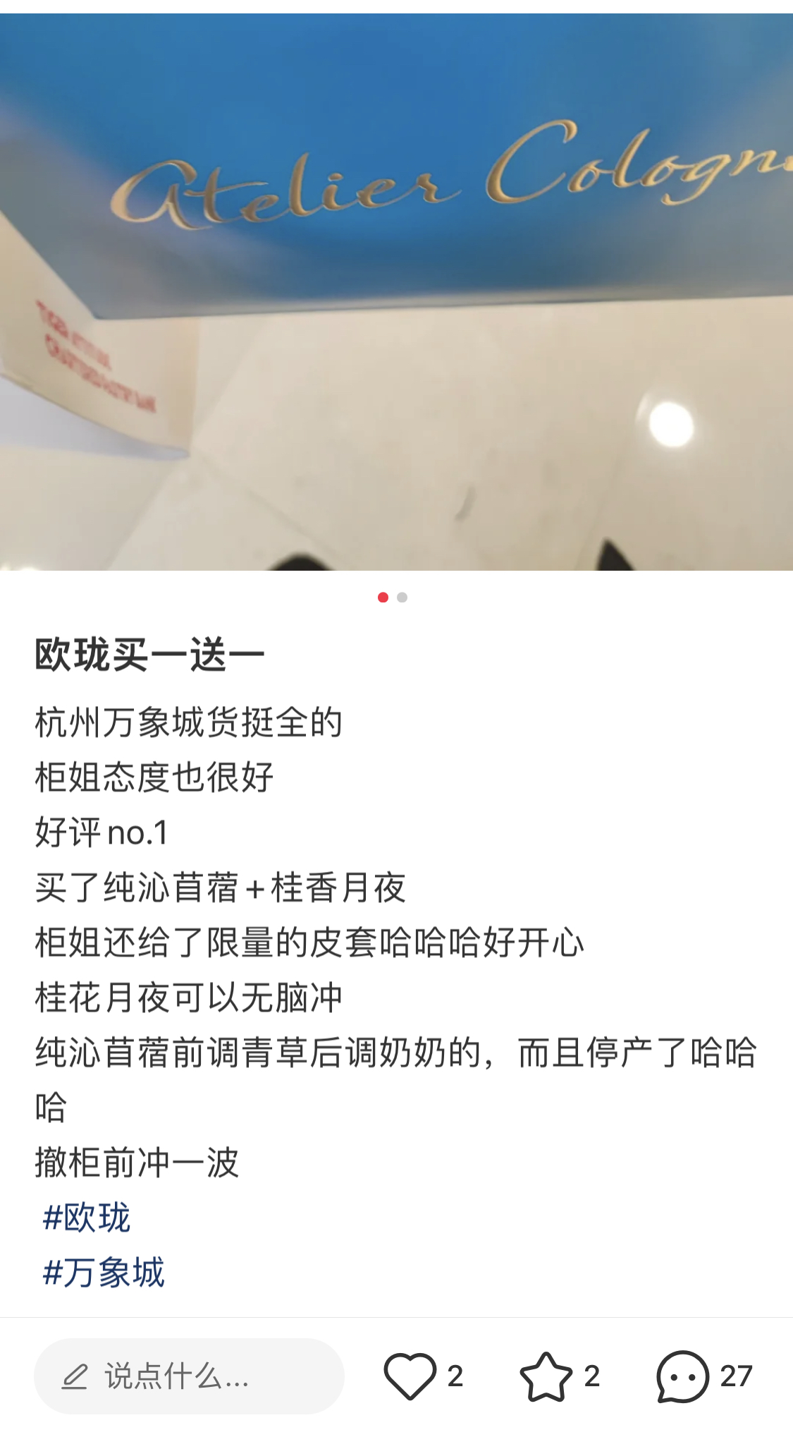 虽然当时已经是2017年,但沙龙香仍然是一个没有被广泛认知和教育的领域。得益于欧莱雅集团的背书和当时高出大部分香水品牌的价位,欧珑在疫情前可以说是顺风顺水,不仅扩点速度快,而且进入的都是高端购物中心。