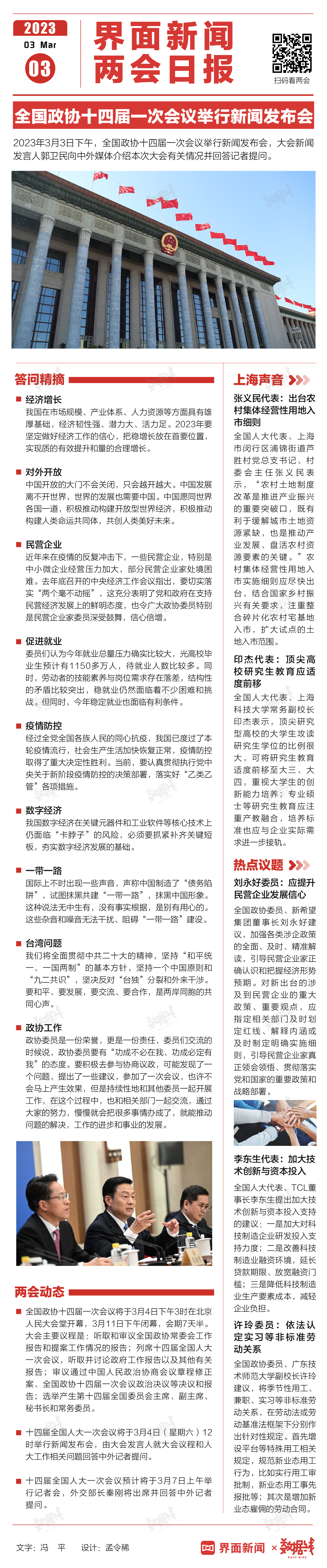 2023年3月3日, 全国政协十四届一次会议举行首场新闻发布会,大会新闻发言人郭卫民向中外媒体介绍本次大会有关情况并回答记者提问。