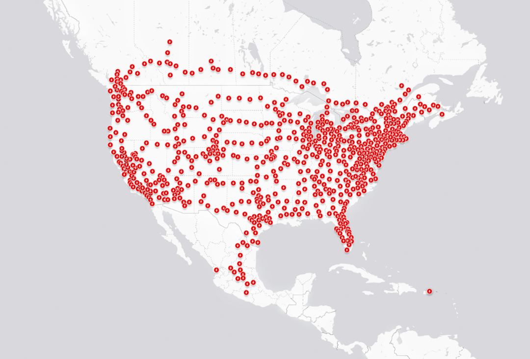 特斯拉超充桩在美国的分布情况,图源特斯拉官网