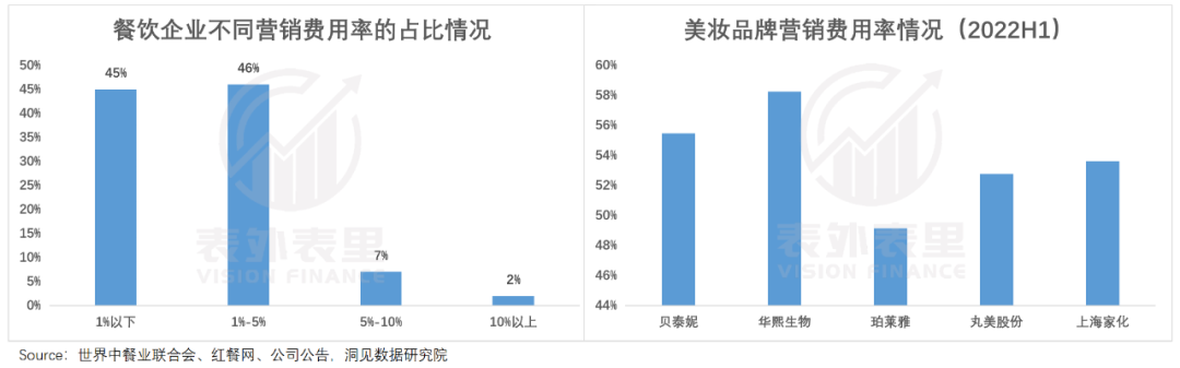 以占本地生活大头的餐饮为例,销售费用率在10%以上的企业仅占2.35%,而电商强势的美妆品类,品牌的销售费用率多在50%左右。