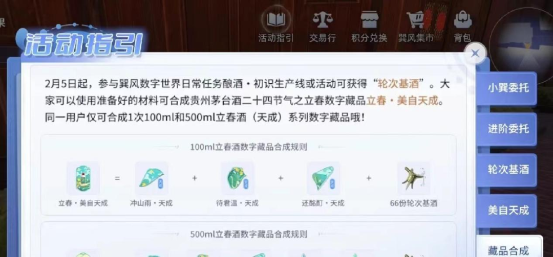 这主要得益于巽风APP对于数字藏品的合理利用。在巽风的玩法设置中,数字藏品的核心权益与茅台酒的购买资格深深绑定,以实体价值赋能线上玩法,提升了用户对数字藏品的兴趣。同理,数字藏品的珍稀特性也让茅台酒有了更大的溢价空间,拉高了用户对实体商品的估值。