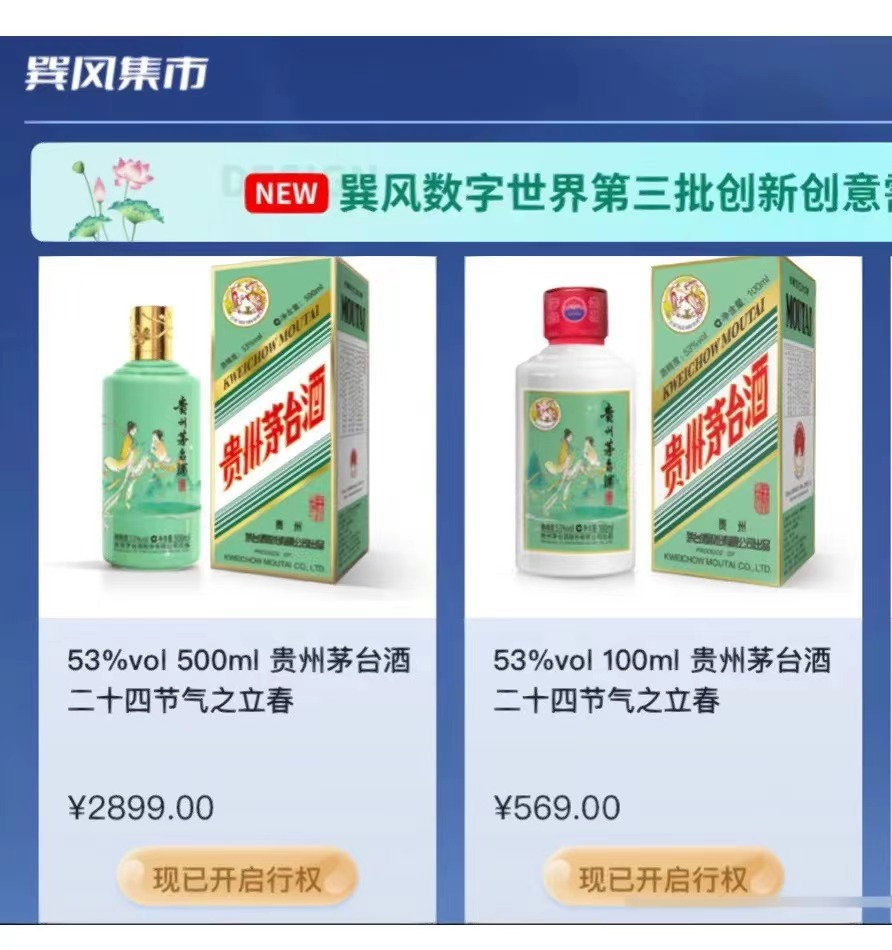 因此,在巽风的玩法设置中,“限量版”的概念被反复强调。在此次茅台立春酒的发售中,巽风APP只投放了11万份立春酒的数字藏品,其中500ml的有3万份,100ml的有8万份。只有成功获得数字藏品,才有可能抢购实体茅台酒。可见,不仅数字藏品是限量发布,茅台酒的购买名额更是珍稀。