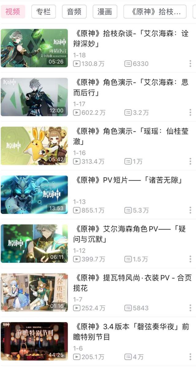 燃次元发现,《原神》官方账号目前在B站的粉丝量已达1631.8万,获赞次数为1.4亿,其发布的包括新版本预告、EP(迷你专辑)等在内的隔日更作品,流量集中在300-500万。