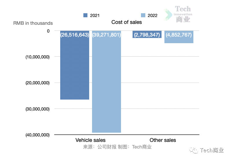 其中本财年蔚来公司车辆销售成本为393亿元,上一财年该项成本为265亿元,本财年增幅为48%。其他销售成本为49亿元,该项成本增幅为73%。