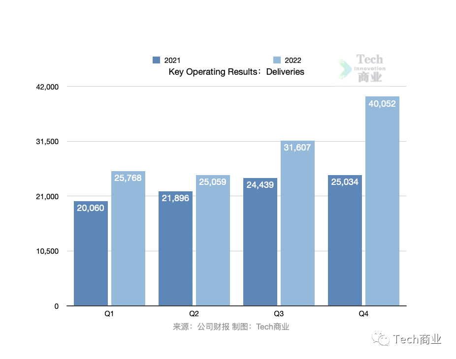 蔚来创始人、董事长兼首席执行官李斌在财报公告中表示,“蔚来在2022年第四季度交付了40,052辆汽车,同比稳步增长60%,实现了创纪录的季度交付量。公司 在 2022 年结束时交付了 122,486 辆汽车,同比增长 34%。蔚来已成为中国智能电动汽车市场最具竞争力的高端品牌,2022年第四季度公司在40万元和30万元以上的高端纯电动汽车细分市场中排名第一,市场份额分别为75.8%和54.8%...”