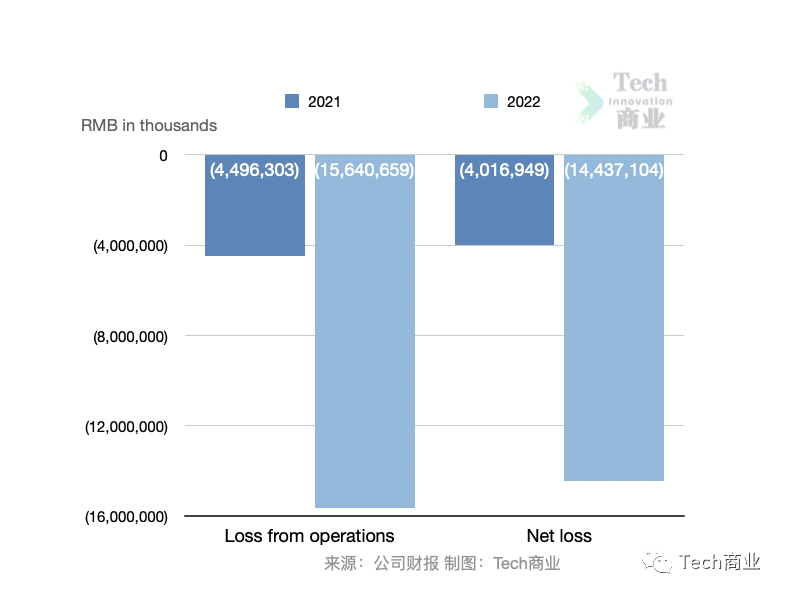 蔚来公司2022财年营业亏损156亿元,上一财年为营业亏损45亿元,本财年营业亏损增幅为248%。该公司本财年净亏损144亿元,上一财年净亏损40亿元,最新财年净亏损表现为显著扩大。