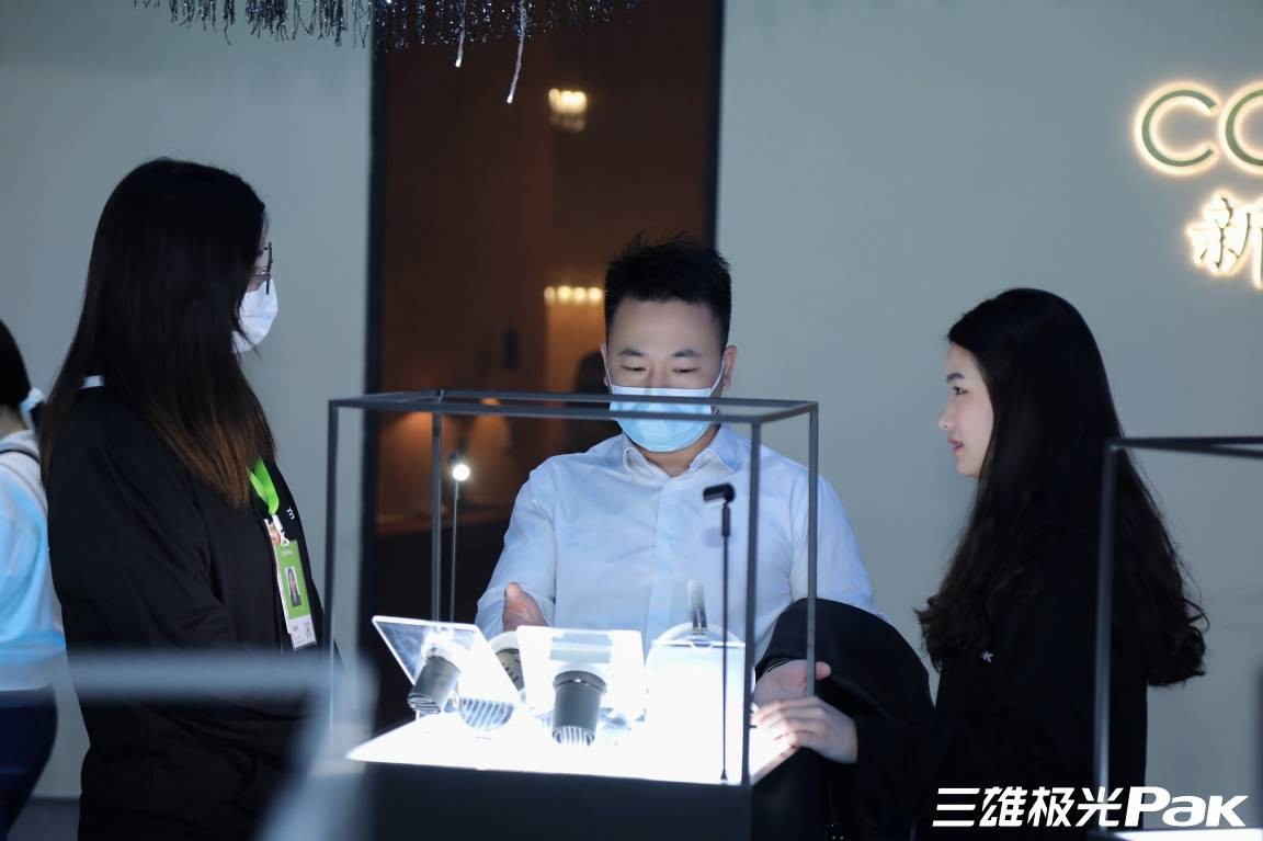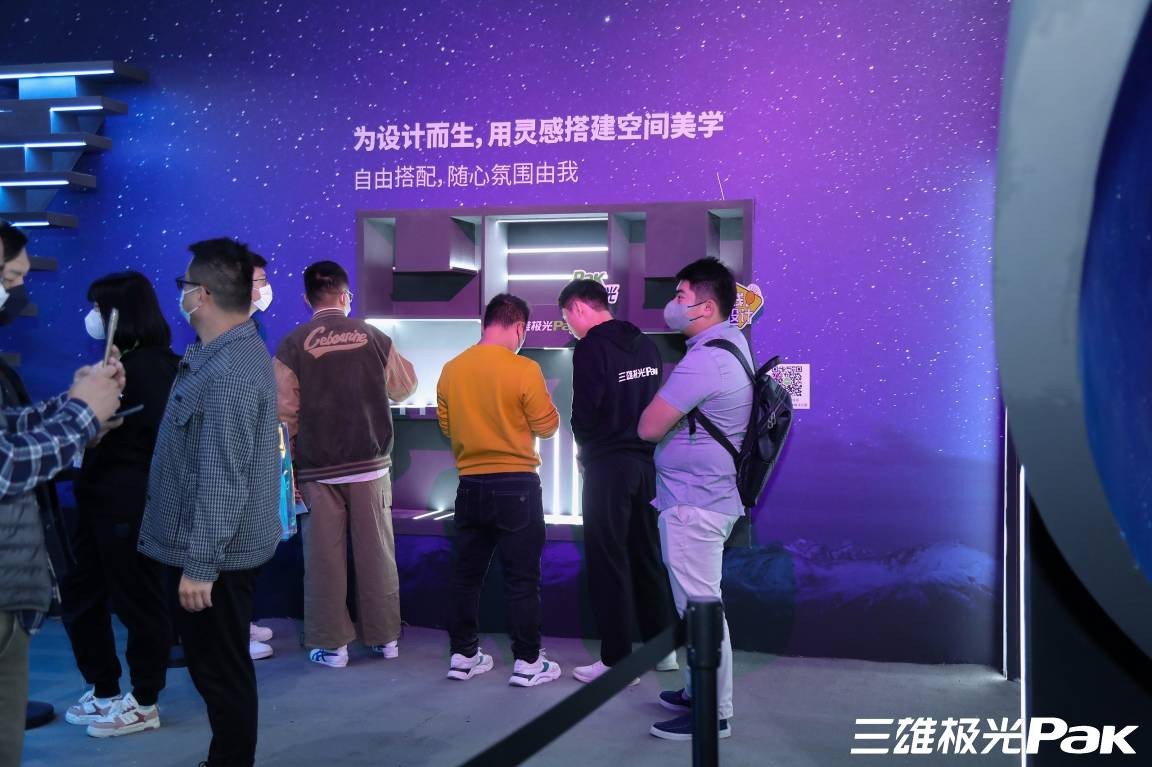 其中人气爆棚的当数中国照明行业领先者三雄极光品牌展馆。时尚、科技、艺术、创意、美学无处不在,吸引了络绎不绝的观众前来合影留念,就连设计师们也赞不绝口,成为本届设计周热门打卡圣地。