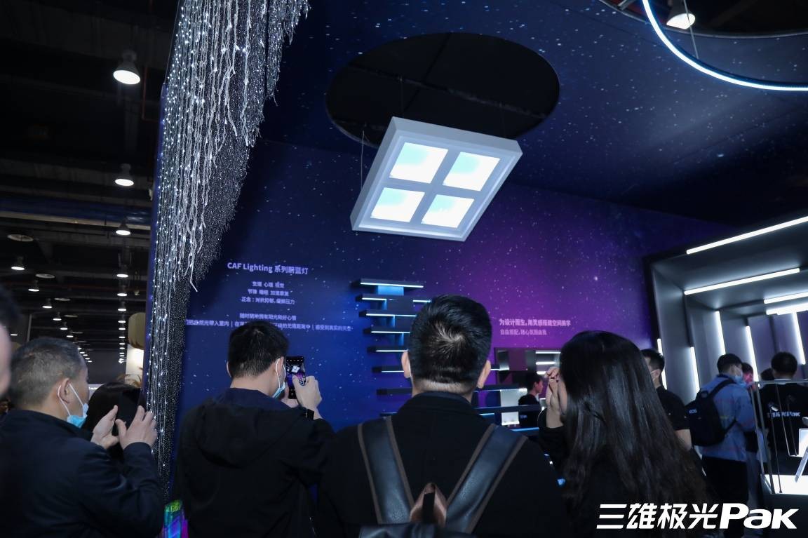 其中CAF Lighting蔚蓝灯,真实模拟太阳光谱,让人无论从照度、色温、角度都还原太阳照进室内的效果,备受现场观众关注。它的出现,将在昏暗的地下室也能享受蓝天白云和阳光成为现实,带领人类进入一个真正与自然契合的健康时代。