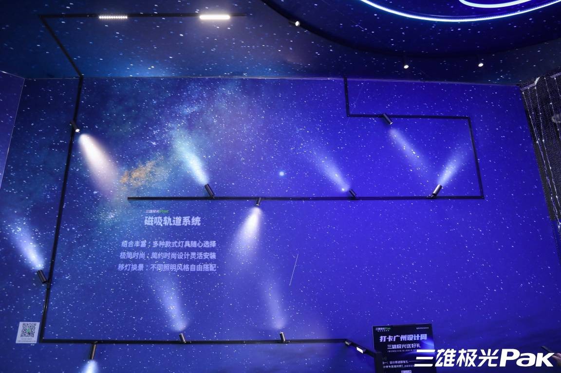 星际美奂如斯,带给我们的感觉是艺术的、浪漫的、科幻的、舒适的。在三雄极光这场“星空大秀”里,巧妙地将蔚蓝灯、磁吸灯、软灯带、型材灯、智能照明系统等产品融入其中,极简设计颜值在线,灵活多变光影幻变,让观众在产品设计中感受畅游银河星际的深邃与神秘,碰撞出更为曼妙神奇的灵感与火花。