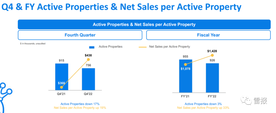 2022年Q4,Funko的活跃IP数量相较去年大幅减少,从915个减少到756个,下降了17%。不过受疫情后内容持续复苏的大环境影响,单个IP的净销售额仍然增长了19%,为43.8万美元。全年活跃IP数量为926个,同比下降3%,单个IP的净销售额则为142.8万美元。