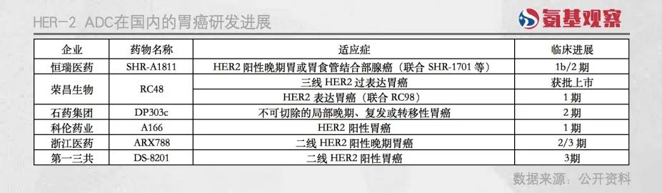 乳腺癌之外,胃癌是HER2靶点最大的适应症。由于饮食习惯等问题,胃癌是国内高发癌种之一,HER2阳性率约为12%-13%。