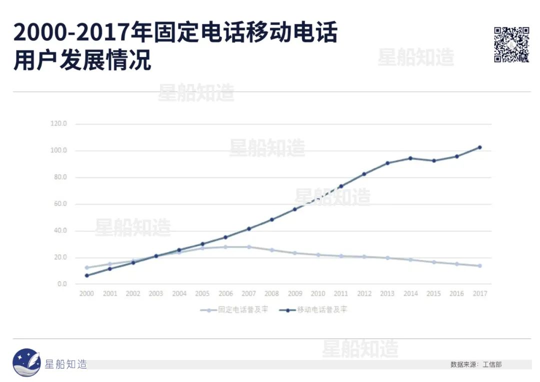 电话普及率变化情况 数据来源:工信部 制图:星船知造