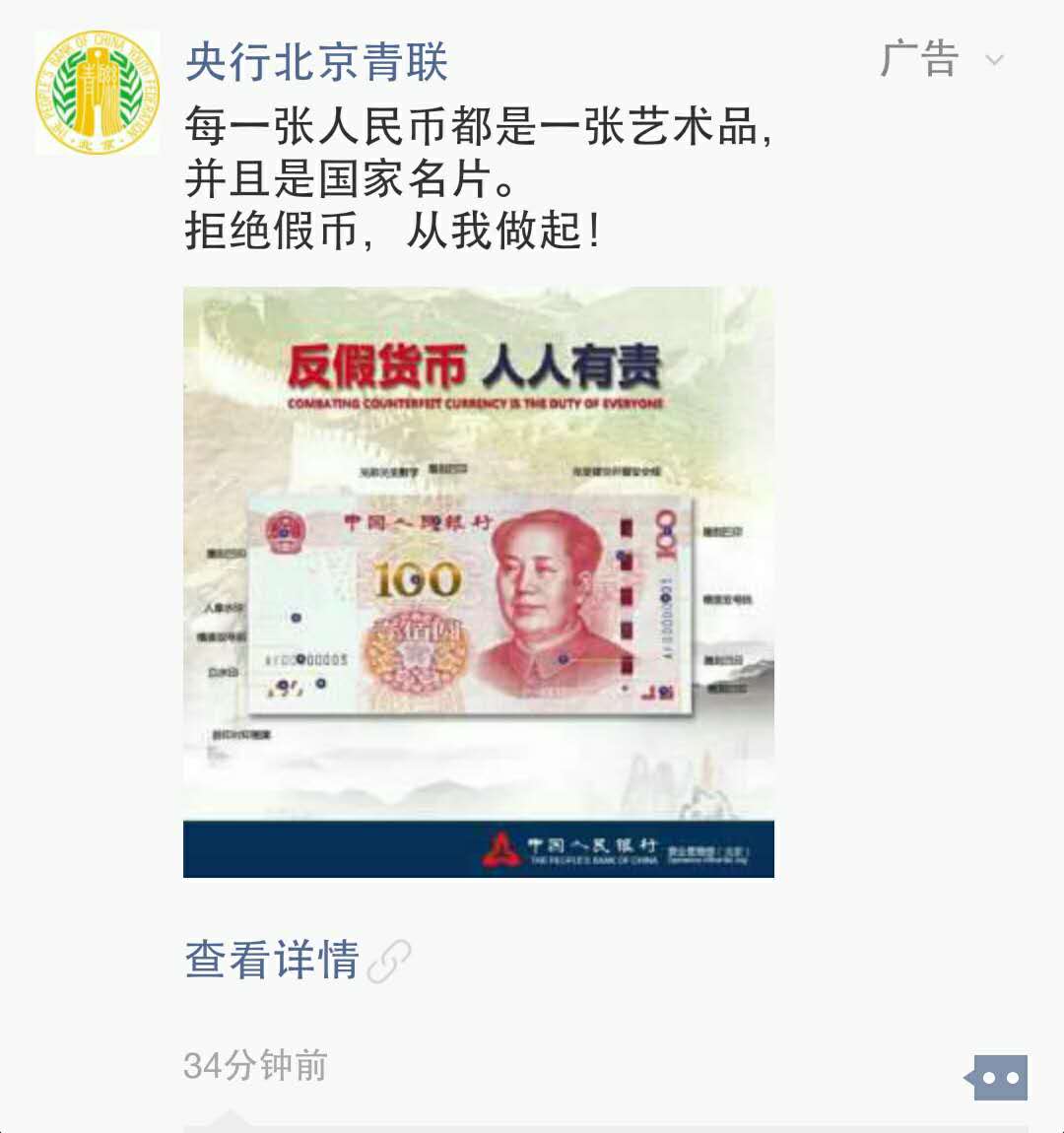 一向高高在上,只关注宏观经济的央行最近做了一件可爱的事情:在朋友圈投放了三支创意十足的微视频广告,告诉广大人民如何鉴别假钞。
