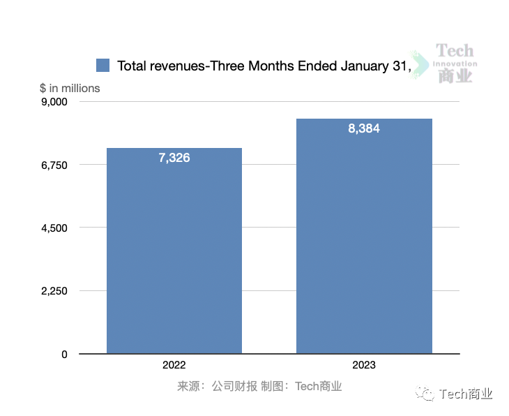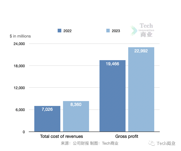 本财年Salesforce公司收入成本为84亿美元,上一财年该项为70亿美元,本财年收入成本增幅为19%。2023财年该公司毛利润为230亿美元,同比上一财年时期的195亿美元,本财年毛利润增长18%。