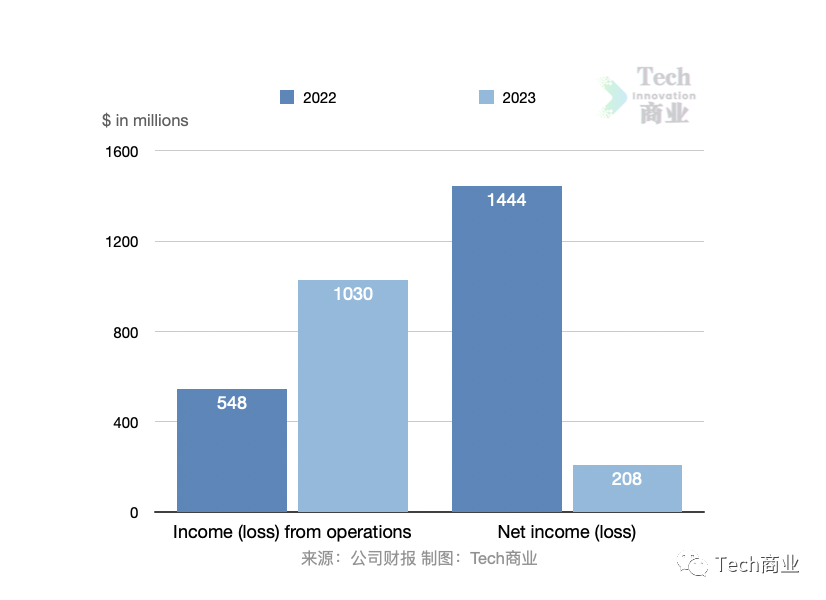 Salesforce2023财年营业利润为10亿美元,上一财年营业利润5亿美元,本财年该项显著提升。本财年该公司净利润为2亿美元,上一财年同期为净利润14亿美元,最新财年净利润减少86%。