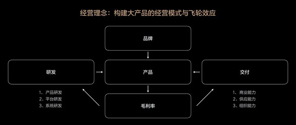 理想用了一套“十字”模型,来做企业的自我观察和诊断,并无太多花花绕绕,只有品牌、产品、毛利率、研发、交付五大维度,以及与之相关的能力,整体还是围绕产品体系展开。