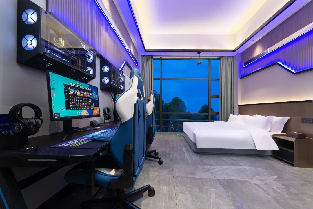 在电竞酒店的掘金者中,除了传统的夫妻店和区域性连锁酒店,还有香格里拉这样的豪华酒店品牌,腾讯、京东、同程艺龙等也以投资的方式入局。