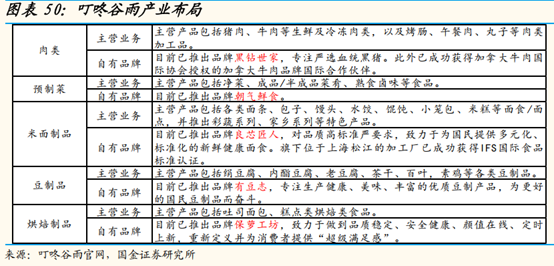 2020年10月,叮咚买菜建设“叮咚谷雨”布局预制菜、面食、肉类、烘焙产品等加工环节,目标将自有产品占比提升至 50%,实现规模化生产。