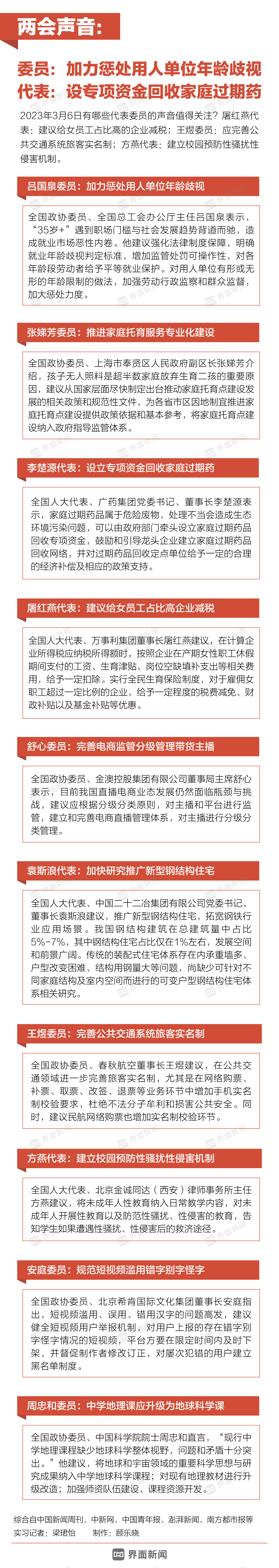 委员:加力惩处用人单位年龄歧视,代表:设专项资金回收家庭过期药 | 两会声音