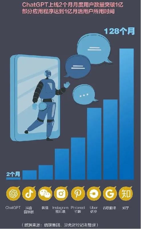 应用方面也是一骑绝尘。瑞银的一份报告显示,ChatGPT推出仅两个月,月活就突破了1亿。