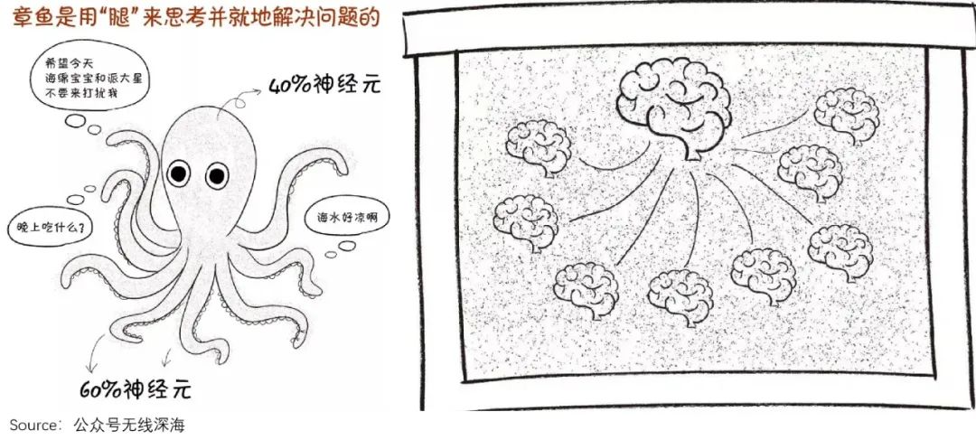 打个比方,章鱼在捕猎时异常灵巧迅速,腕足之间配合极好,从不会缠绕打结。这得益于它们类似边缘计算的“一个大脑+多个小脑”。