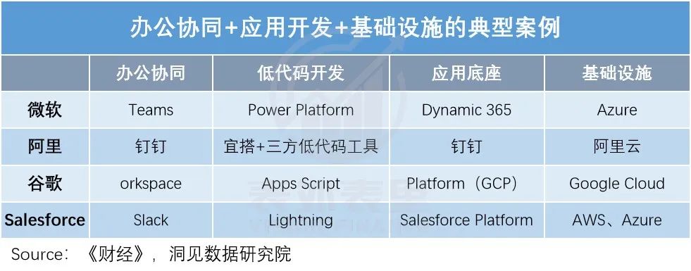如此趋势下,可以看到,海内外云巨头都在抢占“协同办公+应用开发+基础设施”的布局高地。
