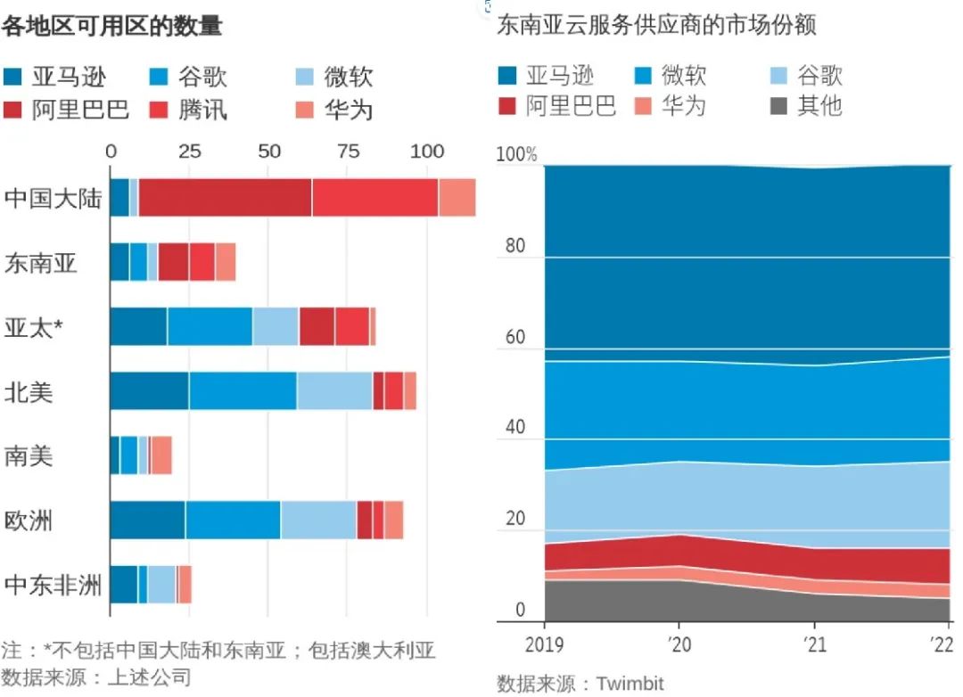 阿里云们发布出海计划前后,谷歌云公布了在马来西亚和泰国建设数据中心的计划;AWS也表示要在15年内向泰国和印尼各投资50亿美元。