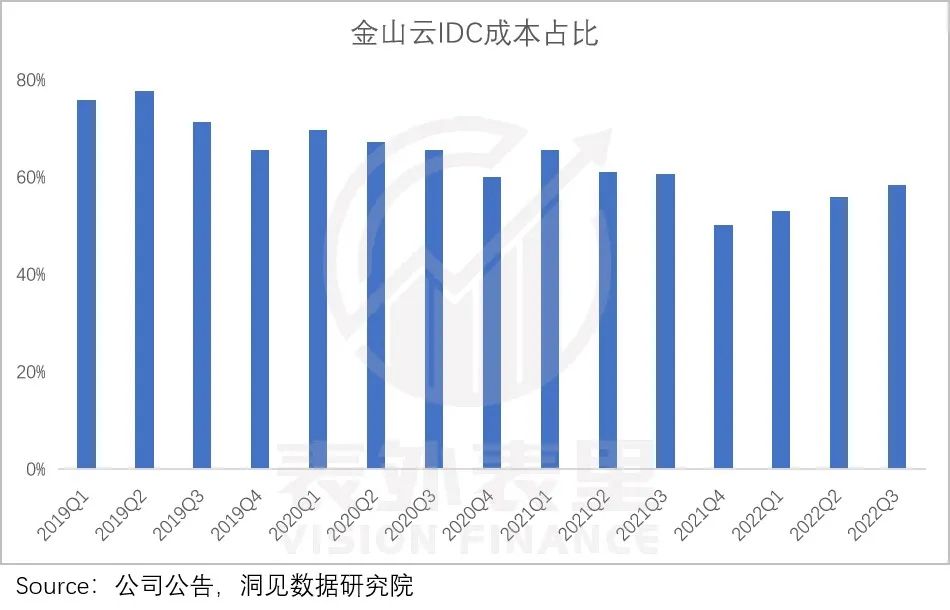 另一方面,国内云厂商基本上是为运营商“打工”。如下图,金山云IDC(带宽成本+机架成本)成本占比约60%。