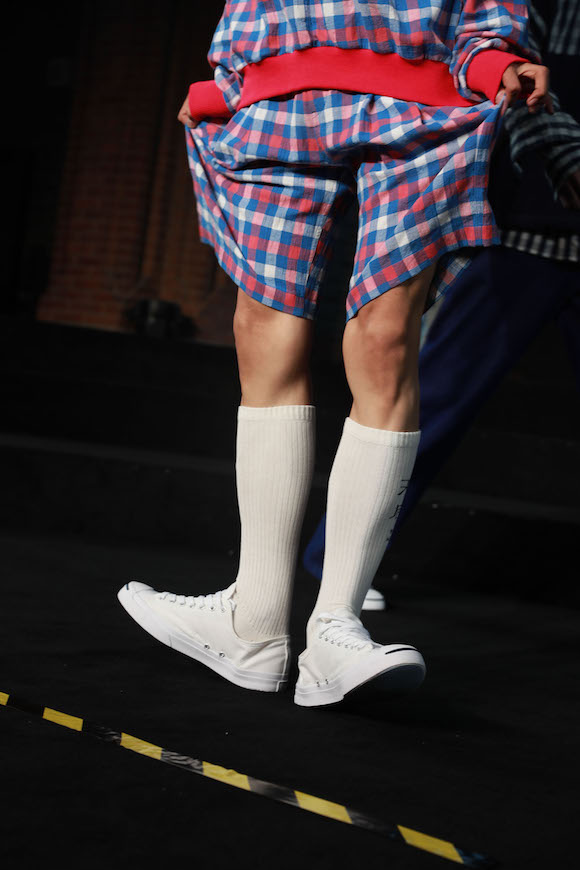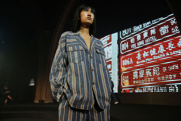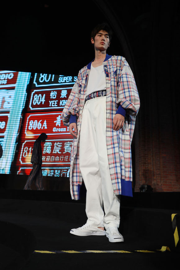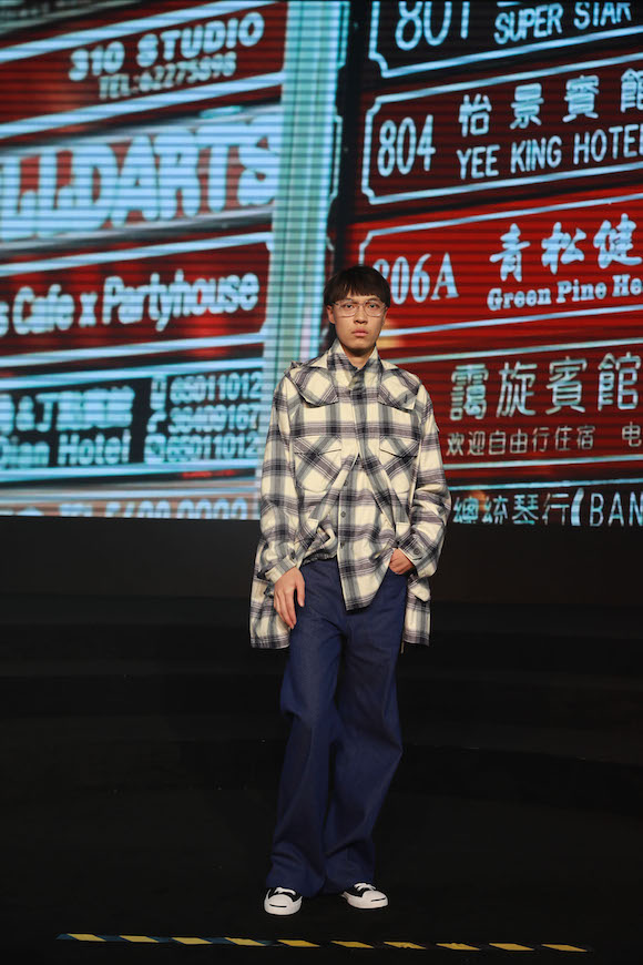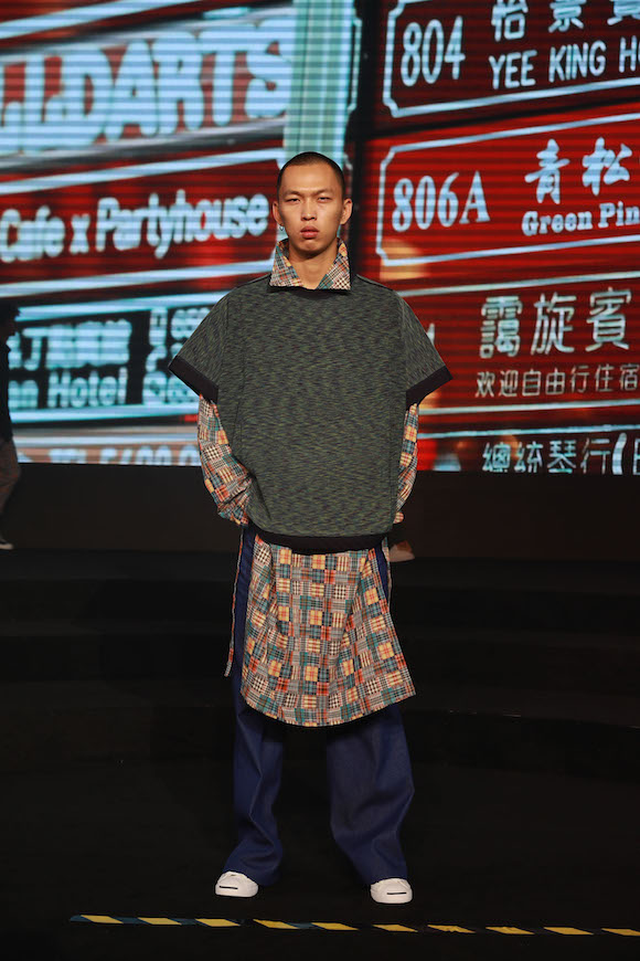 “我对香港的印象其实更多是夜晚的印象,因此我用了很多彩色来表现香港的霓虹灯,也用了很多亮面的材料,而条纹、格纹又让人想到密集的楼房,”周晓雯在秀后接受采访时说,“整个系列其实是反映出了香港市井的一面,想要展现这个社会里形形色色的各种人,不同阶级和不同生活状况的人。”