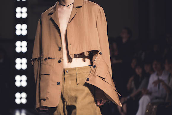 这一季,两位设计师将“Slow is a new fast(慢是一种新的快)”定为主题,强调搭扣在设计中的运用。“扣子扣错就不好看了,一颗颗扣就是让人慢下来。”周俊在秀后采访中说。