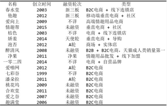 下图是电商类情趣创业公司的列表,可以看到部分企业已经意识到转型的重要性,转向垂直化、品牌化的电商运营。
