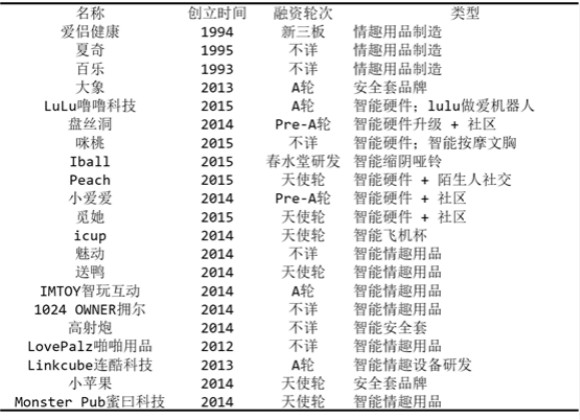 为弥补硬件制造业的短板,多数企业开始将精力投放到软件优化上,比如可以通过手机蓝牙连接情趣用品,甚至可以创造一个集成平台,为各个厂商的智能化情趣用品提供准入接口,解决异地的情侣的需求。通过下图可以看到,伴随14年智能硬件风潮崛起或转型的情趣企业,比上述两个类别还要多。