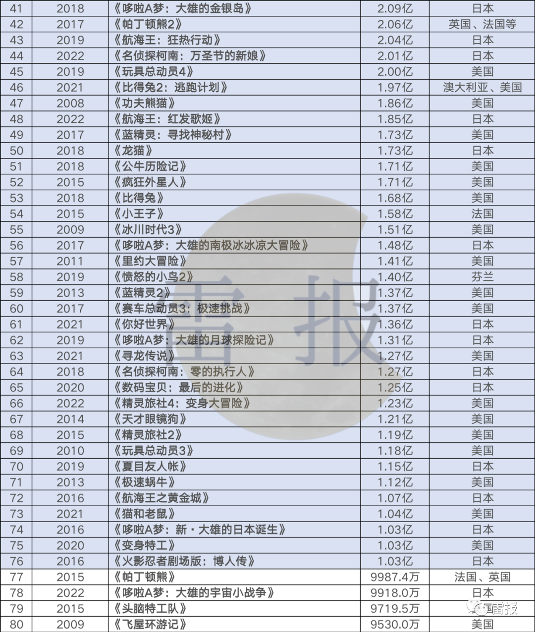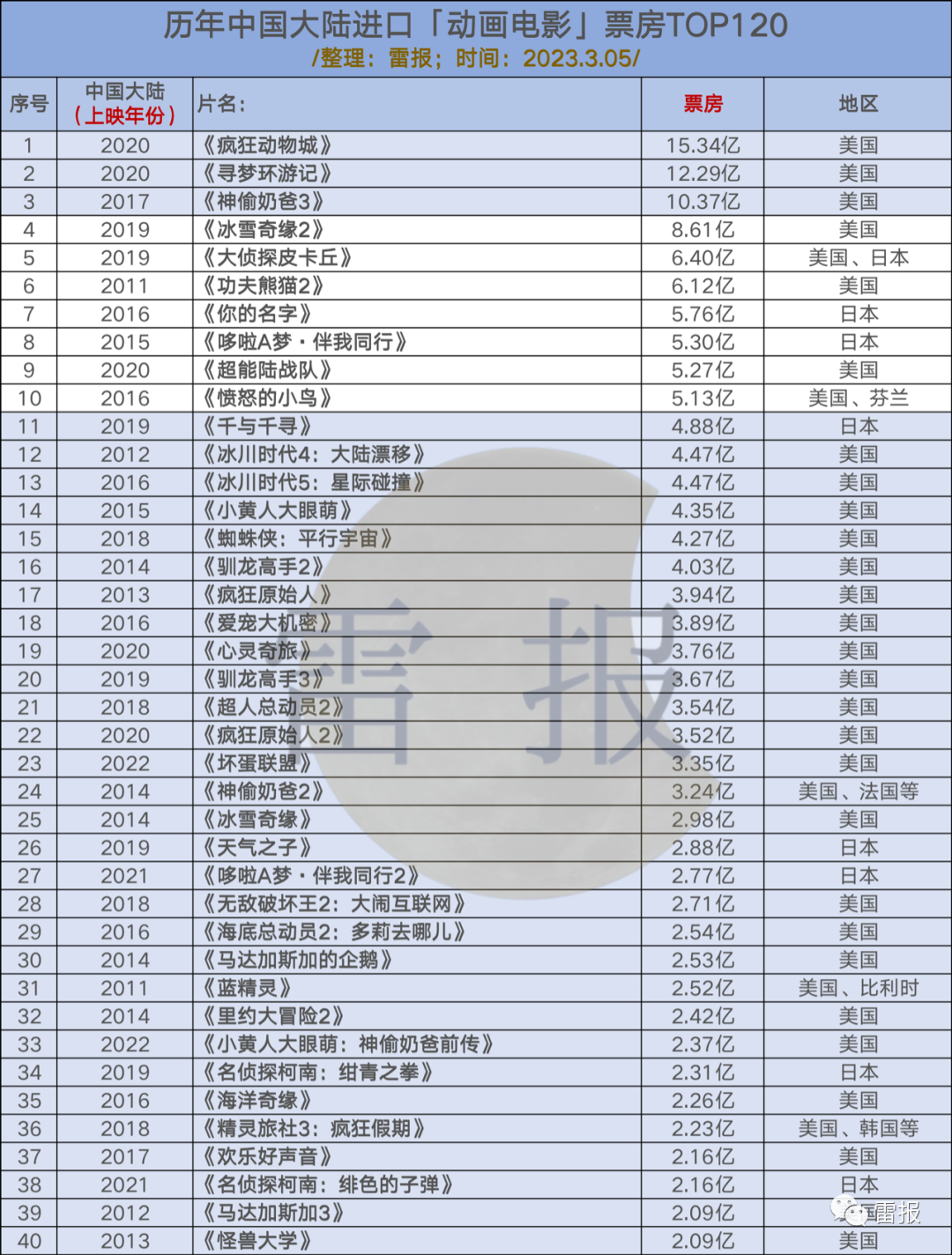 进口动画电影“票房TOP120”是哪些?