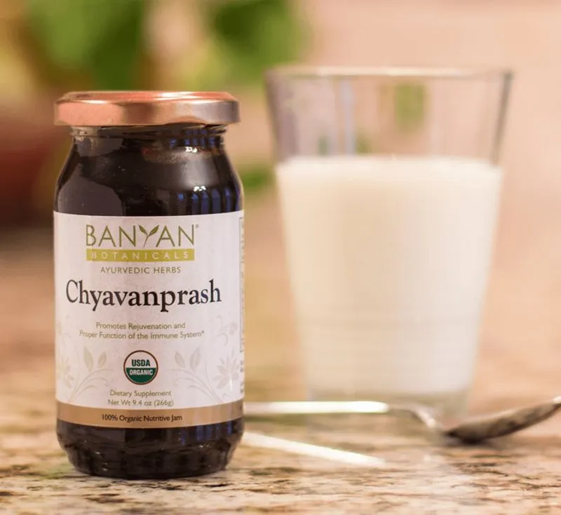 由健康品牌 Banyan推出一款阿育吠陀草药配方的果酱Chyavanprash,该果酱以富含抗氧化剂的amalaki水果为基础,同时添加Ashwagandha、 Haritaki、Boerhavia 、黄果茄属植物草本植物 (Kantakari) 、指叶牵牛花根 (Vidari Kanda) 、印度黄牛茎 (Guduchi) , 香附根 (Musta) 等多种有益于健康的天然草药中提取物成分,可增强免疫系统健康、促进新陈代谢,同时增强身体抵抗生活压力带来的负面影响。该款果酱本身味道鲜美,可像传统的果酱一样涂抹在吐司上或混入牛奶等饮品中。