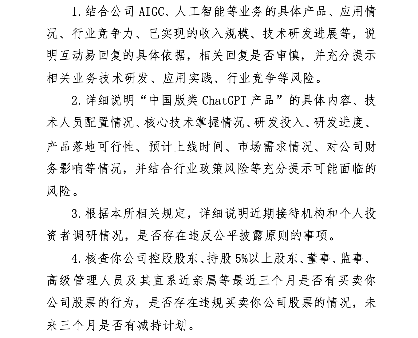 值得一提的是,针对昆仑万维近期频频“碰瓷”AIGC、ChatGPT等相关概念,深交所于3月3日向昆仑万维下发关注函,并要求昆仑万维在3月8日前说明相关情况。