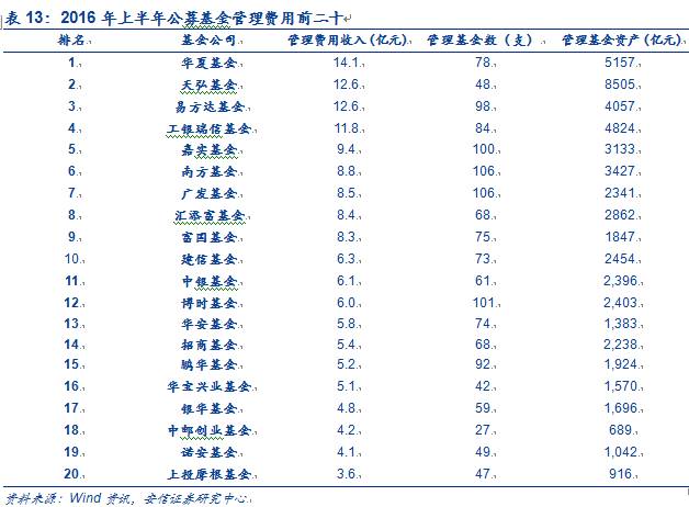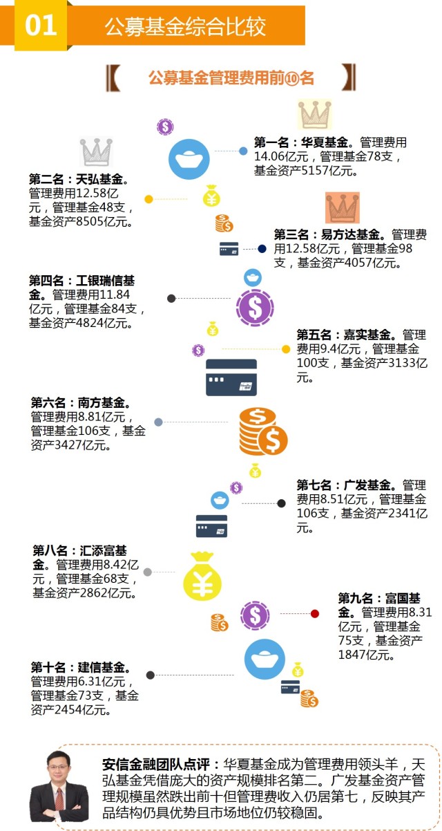 华夏基金成为管理费收入领头羊,天弘基金凭借强大的资产规模获得第二名的管理费收入。广发基金资产管理规模虽然跌出前十但管理费收入仍居第七,反映其产品结构仍具优势且市场地位仍较稳固。