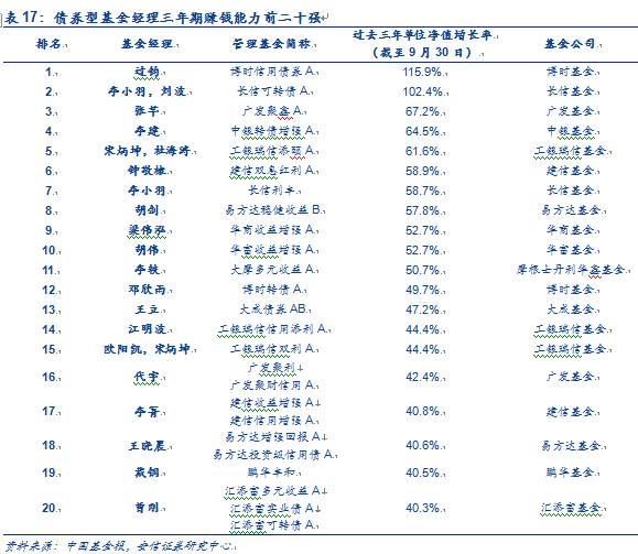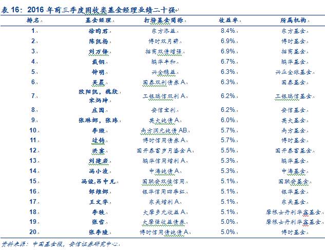 低利率下,固收类基金整体表现出色。前二十大基金经理均能获得5%以上的收益。