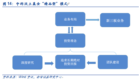 中科沃土基金:坚持做精、做优新三板业务,选出高成长的好企业。中科沃土侧重于把握相对中长期的市场变化,穿越周期,创造高于市场平均水平的长期投资回报。参与挂牌公司的定向增发的新三板业务是中科沃土的战略业务。因此,中科沃土基金新三板投资部将投研团队进行行业分工,针对重点行业安排专门研究员进行覆盖研究,在充分利用公司的整体研究力量的同时借助PE股东背景优势,按照行业最高标准对重点行业进行深度研究。为满足公司的研究需求,中科沃土注重组建投资团队核心骨干,强调对团队文化的认同,旨在培养业务全面、专业过硬的人才梯队。