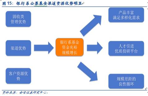 银行系公募基金优势明显。大股东为银行的基金公司有工银瑞信、民生加银、招商基金、兴业基金等,总体特征是资产管理规模庞大,具有渠道优势、客户资源优势和固定收益类管理能力优势,但盈利能力则存在分化。